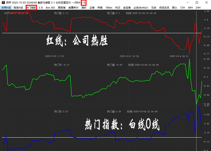 热门指数:单个公司胜率减平均欧赔胜率;白线是0值线。
